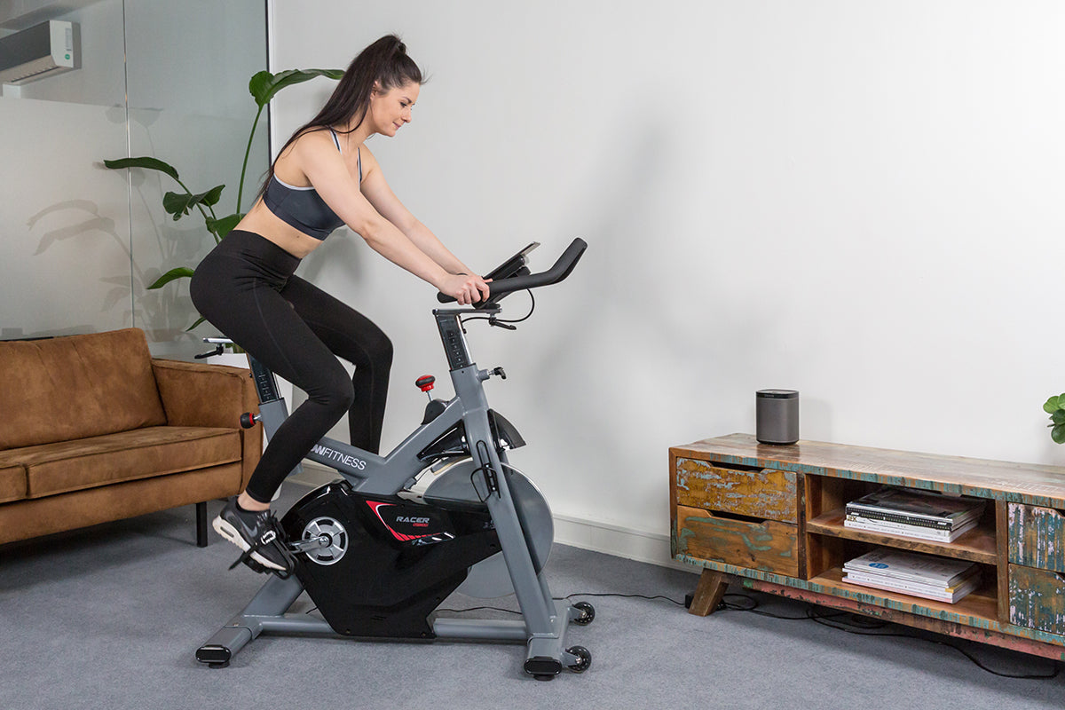 The Flow Fitness Racer DSB600i Speed Bike is designed so that you can always adopt an ergonomically sound posture. Both the handlebars and the saddle are vertically and horizontally adjustable. In addition, the pedals are equipped with an SPD click system and a toe clip that you can use with any shoe. So slipping during your workout is a thing of the past.